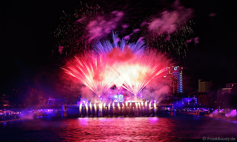 Frankfurt feierte das große Bürgerfest zum 25-jährigen Jubiläum anlässlich des „Tag der Deutschen Einheit“. Der Höhepunkt der Feierlichkeiten bildete das große Lichtspektakel am 03.10.2015 auf der Untermainbrücke über dem Main.