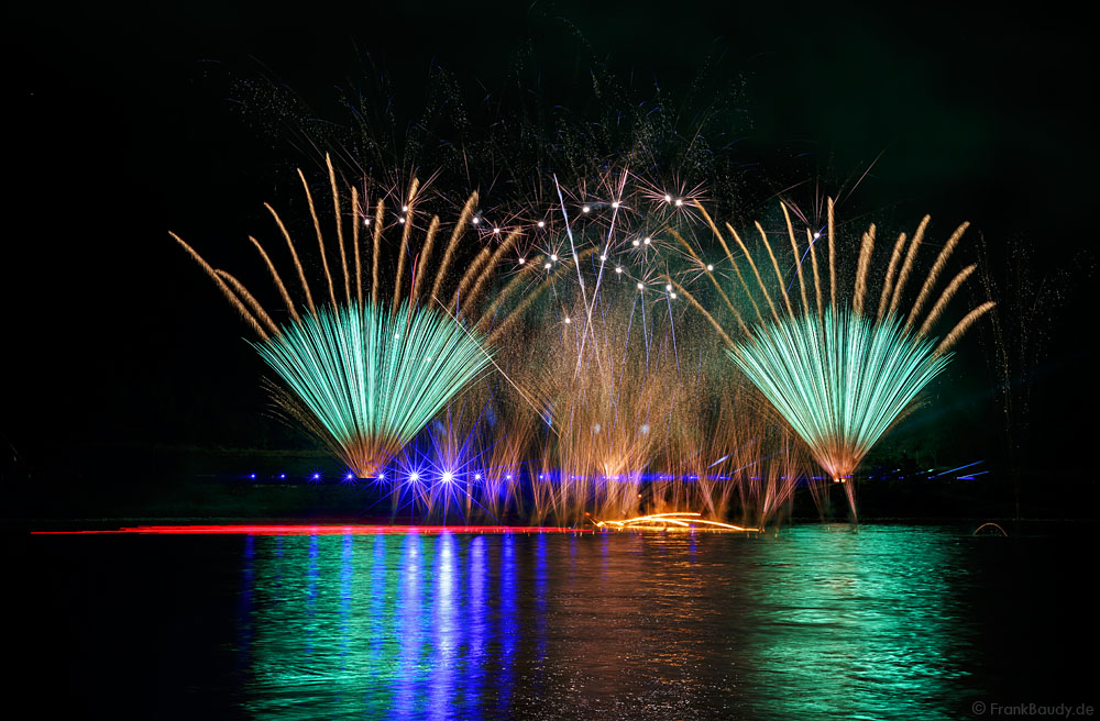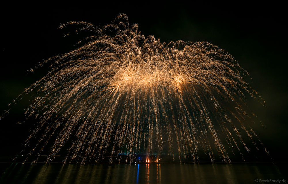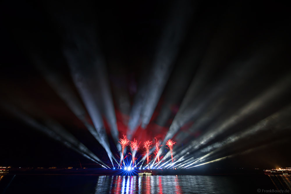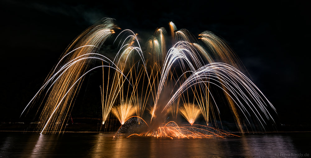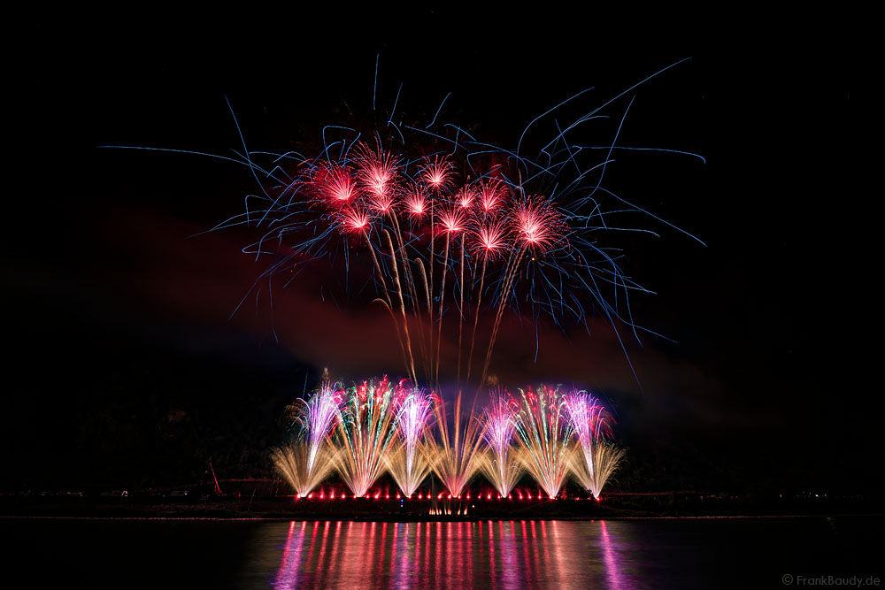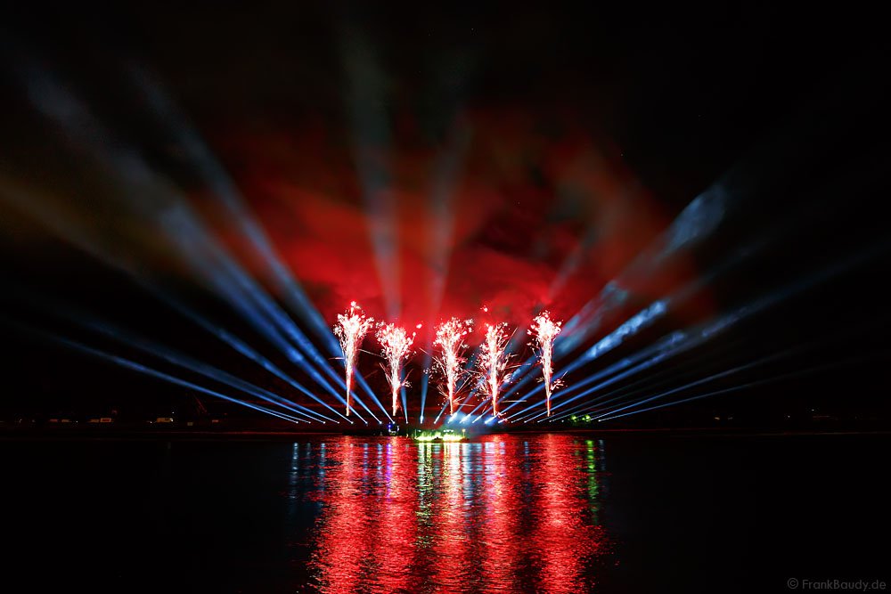 Die dynamische Musik von Thomas Bergersen, absolute Synchronität und ausgesuchte Effekte machten das Feuerwerk am Rhein bei Feuerwerkskennern zu einem echten Highlight und zog wieder Fans aus ganz Europa an.